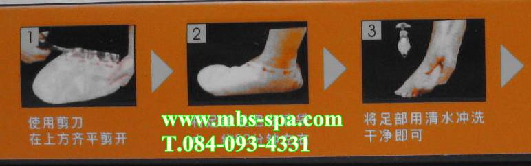 ใช้กรรไกรตัดที่ปากถุงฟลอยด์ด้านนอกโดยระวังมิให้โดนถุง พลาสติกที่อยู่ด้านในใช้กรรไกรตัดตรงเส้นสีแดงตามถุง สวมให้พอดีกับเท้า แช่ทิ้งไว้ ประมาณ 1 ชั่วโมงครึ่ง ล้างเท้าให้สะอาดน้ำเปล่าหรือน้ำอุ่นหลังจากใช้งาน 5 - 7 วันเซลล์ที่เสื่อมสภาพจะค่อยๆ หลุดออก(การหลุดออกของเซลล์ใช้เวลาแตกต่างกันไปแแต่ละบุคคล)หลังจากที่เซลล์ เสื่อมสภาพหลุดออกหมดแล้วควรบำรุงผิวที่ เกิดใหม่ด้วยเจลหรือครีมเป็นประจำ